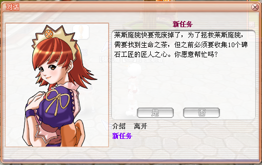 12...带着生命之荼去晨光找安妮(846,370)对话,交予任务道具后便可完成任务《拯救遗址大作战三》,获取到一枚+2金刚耳环