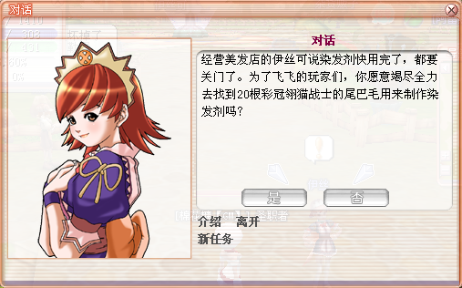 8...返回帕里找伊丝(695,326)完成任务《寻找染发剂》获得任务道具发型设计免费交换卷