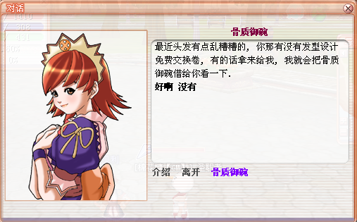 5...去晨光找金贝利(837,365)对话发现她要发型设计免费交换卷